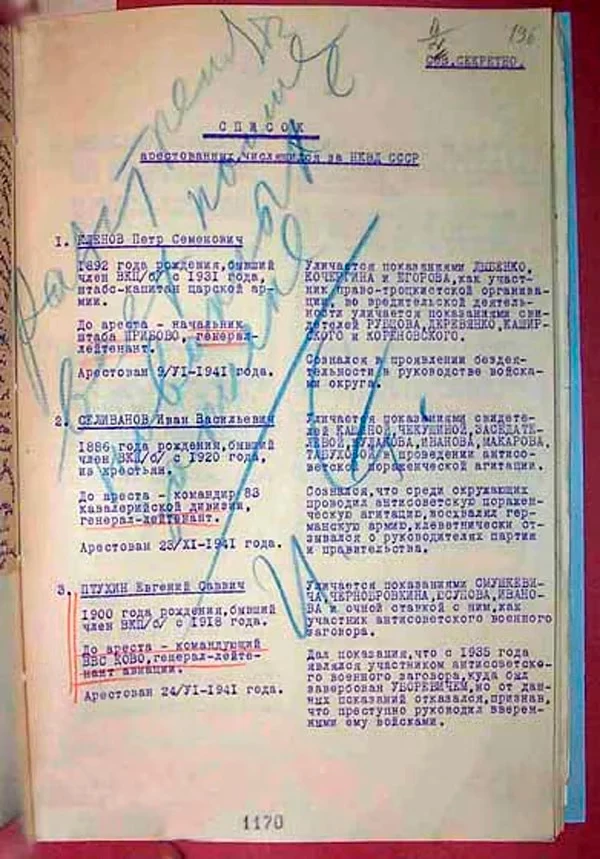 - 12 июля 1941 года арестован Н. Ласкин, генерал-майор авиации, начальник штаба ВВС Юго-Западного фронта.