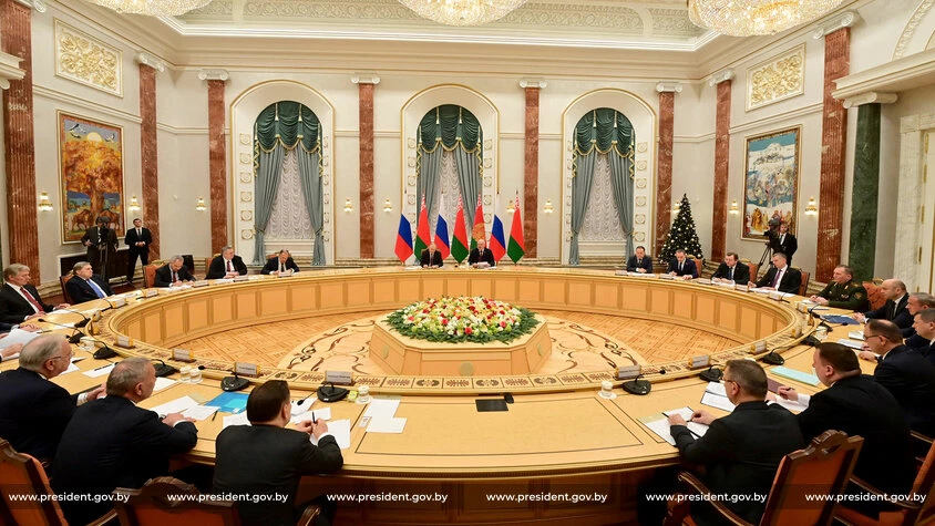 — Владимир Путин прибыл в Минск под занавес рабочего дня, словно перед возвращением с работы решил сделать крюк, чтобы проведать друга, — пишет телеграм-канал Пульс Ленина-19. — Друг к визиту готовился несколько дней и даже провел по этому поводу целое совещание с правительством.
