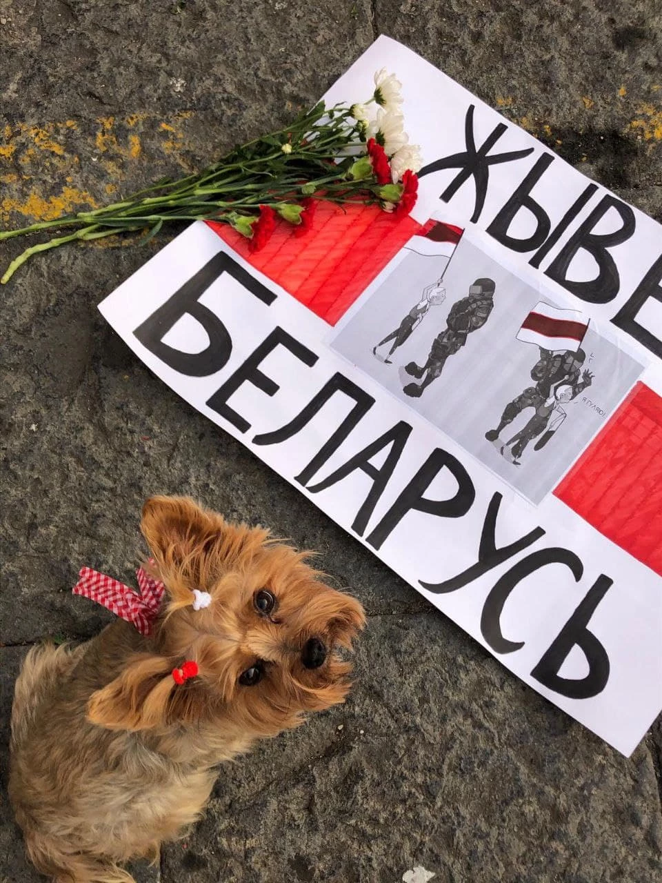 – Там нас было уже больше, приехали девочки со всего острова, пришли итальянцы, украинцы, россияне – помогло сарафанное радио. Мы хорошенько подготовились: вышли с флагами, белыми и красными цветами, транспарантами. Нарисовали карту Беларуси, распечатали фото пострадавших. Пели «Купалінку», «Муры», местный парень перевел куплет на итальянский язык.