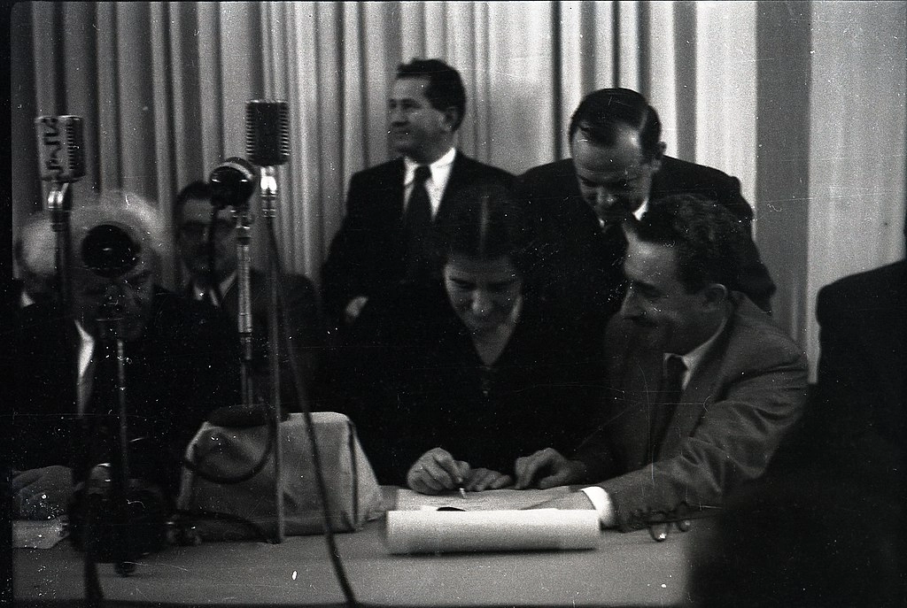14 мая 1948 года Голда Меир в числе прочих лидеров еврейского населения Палестины подписала Декларацию независимости Израиля