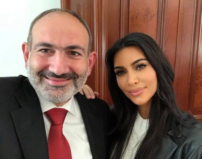 Пашинян с Ким Кардашьян, которая в 2019-м прилетала в Армению с детьми