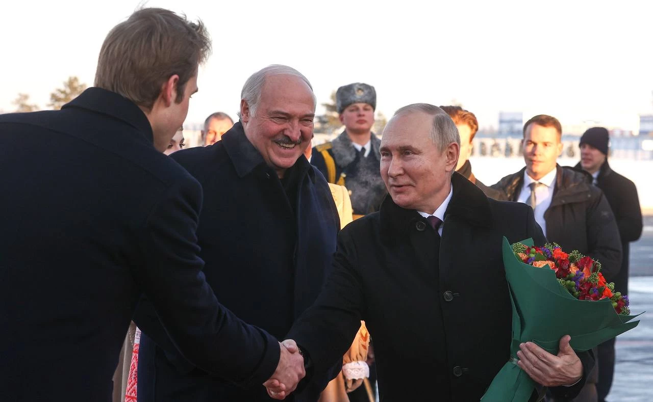 «Путин и Николай Лукашенко в аэропорту» — так подписал фото приближенный к Кремлю телеграм-канал Пул №3