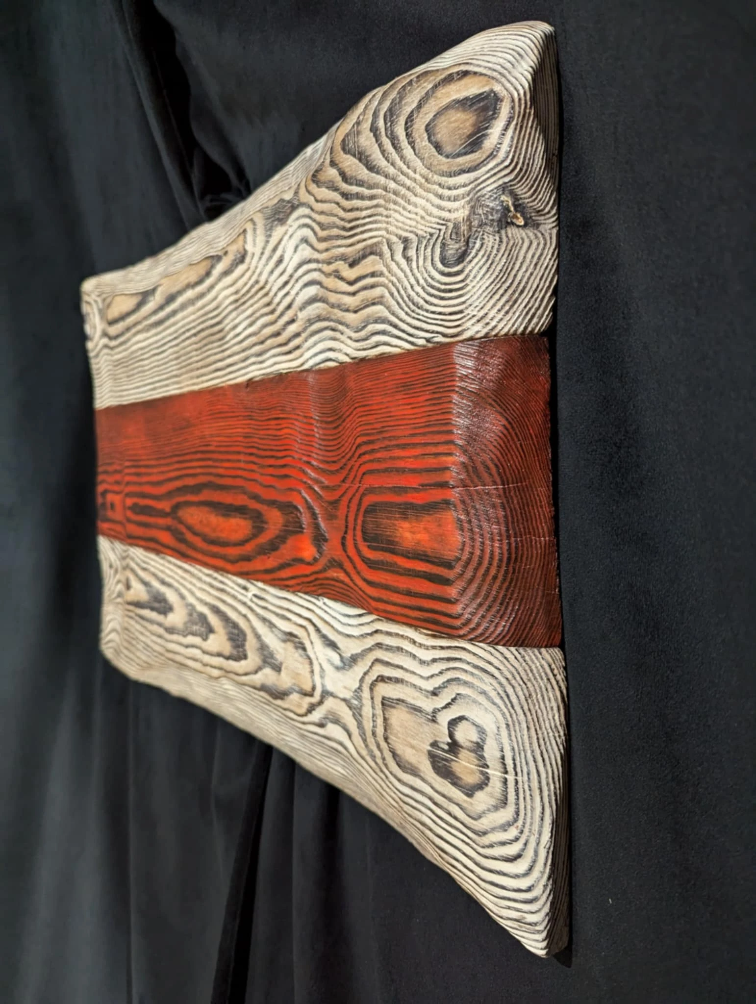 — Пасля 2020-га я быў натхнёны беларусамі, што мы такія цудоўныя, таму хацеў нешта такое рабіць. Пачаў рабіць драўляныя падсвечнікі, пано «Сцяг» у нацыянальных колерах.