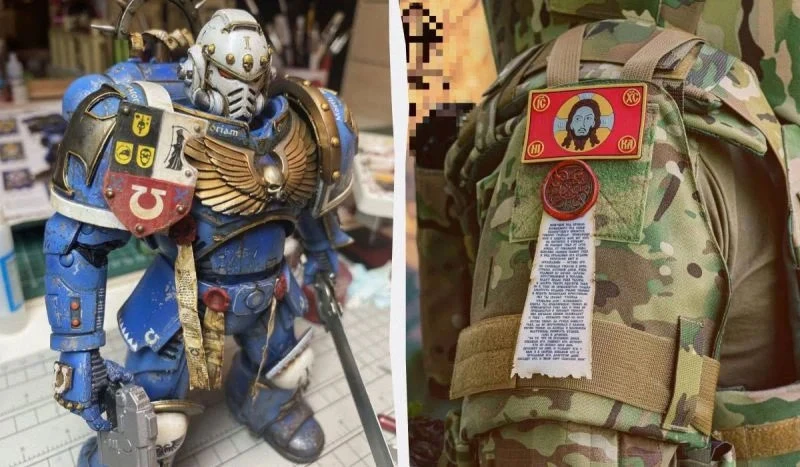 В играх Warhammer такие «печати» крепят к броне космодесантника, как знак благочестия.