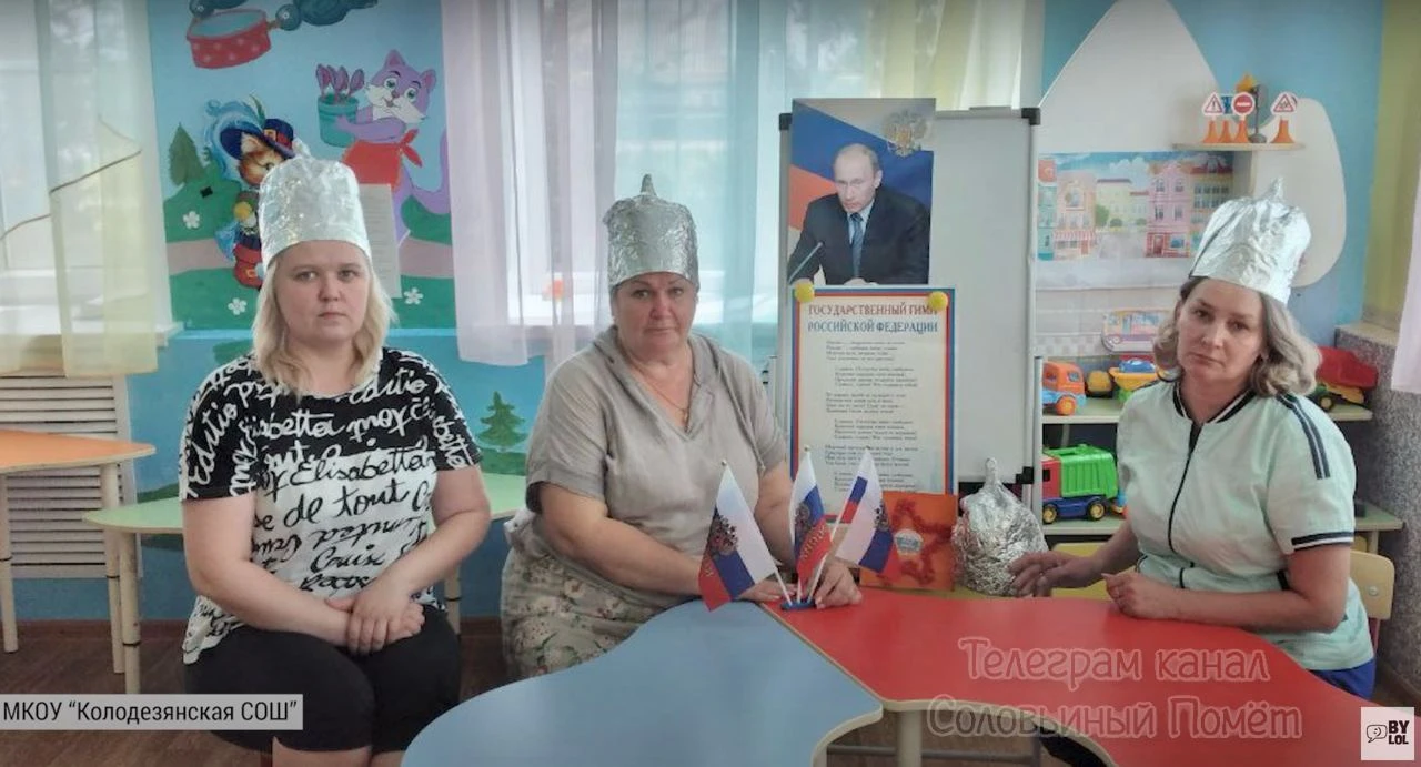 Работники школы должны были сделать из фольги «Шлем Отчизны» — символ готовности к защите от «облучения спутниками НАТО».