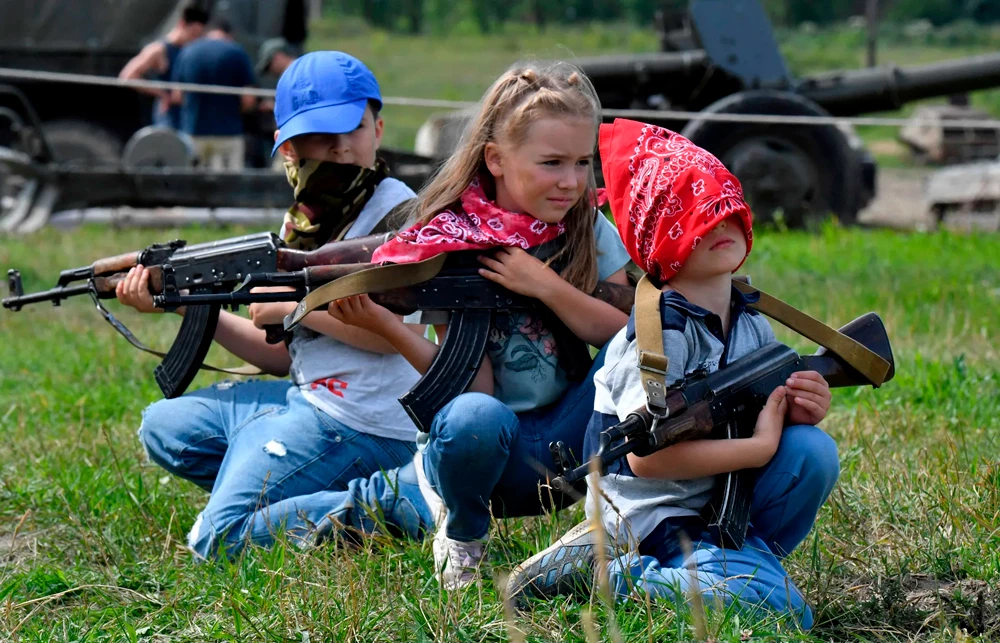 Дети с оружием в расположенном под Санкт-Петербургом «семейном историческом танковом парке». Фото Ольги Мальцевой / AFP / Scanpix / LETA