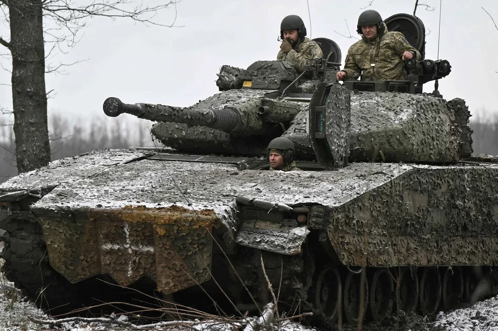 Служащие ВСУ осматривают БМП CV90 на позиции в районе Бахмута