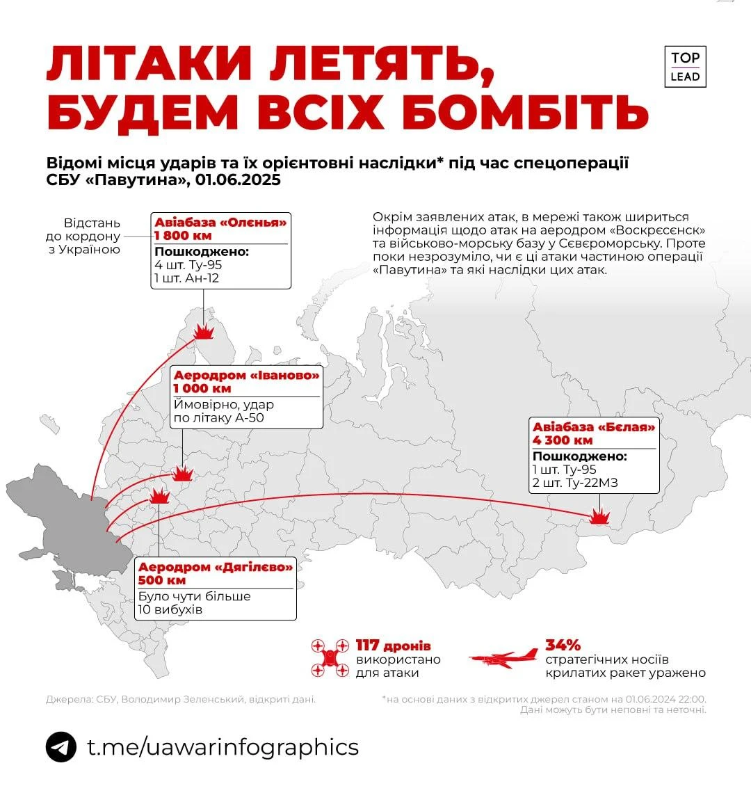 Результаты спецоперации «Паутина»: минус треть российской стратегической авиации.