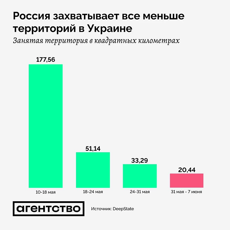 Темпы продвижения российских сил в Украине упали ниже уровня до открытия фронта в Харьковской области, свидетельствуют проведенный «Агентством» анализ данных DeepState.